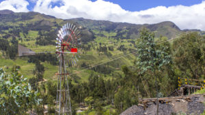 El segundo proyecto financiado es un sistema que, utilizando un molino de viento, bombea el agua desde la parte interna de la mina a través de un sistema de tratamiento de aguas que después es utilizado para riego, sanitarios y control del polvillo de carbón. Este proyecto beneficia a las minas “Las Lajas” en Gámeza, contribuye a la conservación y mantenimiento del medio ambiente y minimiza los riesgos de enfermedades derivadas de la respiración del polvillo de carbón (material particulado). Con esto, además, se demuestra que es posible reutilizar el agua de la mina –que muchas veces es vertida en las quebradas- utilizando energías renovables. (c) ARM