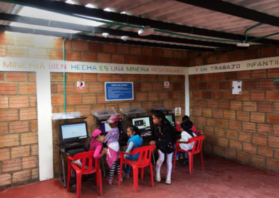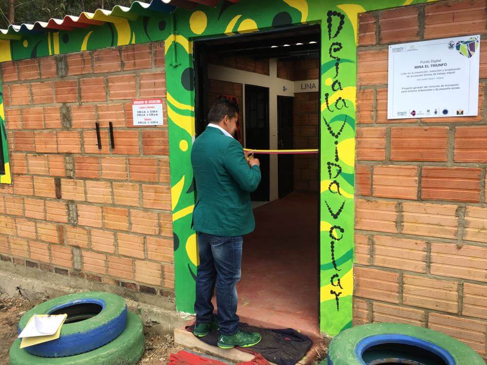 Este proyecto, aún en construcción, es un punto digital comunitario ubicado en la mina “El Triunfo”, en Tópaga. Para la realización de este, se está levantando un local en las afueras de la mina que será alimentado por energía solar, contiene espacio para 4 computadores y 1 impresora donados por la alcaldía de Tópaga, además de cocina, baño y una pequeña oficina. El local supone un esfuerzo de responsabilidad social que será gestionado y mantenido por los dueños de la mina y que permitirá capacitar de manera online a sus trabajadores y reducir la brecha digital en la comunidad. Fundación Mi Sangre, aliada en el proyecto Somos Tesoro, apoyó pintando el local.