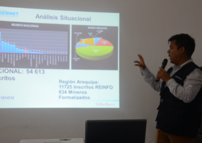 El primer día el Ingeniero Juan Reyner Paredes Molina de la Dirección General de Formalización Minera (DGFM) del Ministerio de Energía y Minas expuso sobre el IGAFOM y los avances en los procesos de formalización; delegados de la Superintendencia Nacional de Aduanas y de Administración Tributaria (SUNAT) presentaron las responsabilidades tributarias del sector minero y el Código de Conducta del Usuario de Insumos Químicos y Bienes Fiscalizados (IQBF), los beneficios de las ventas formales y la correcta tributación y trámites aduaneros y devolución del Impuesto General a las Ventas (IGV); hubo un intercambio de experiencias por parte de organizaciones mineras certificadas bajo el Estándar de Minería Justa Fairmined, y para finalizar, Jhonny Cabellos Mendo, de Shared Interest, habló sobre educación financiera y facilidades de crédito a empresas de comercio justo.