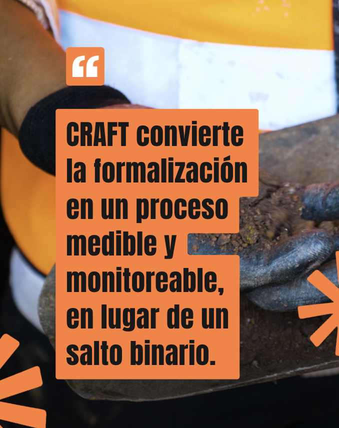 Es importante subrayar que CRAFT no otorga derechos mineros, no reemplaza licencias ambientales ni autoriza comercialización. Su valor radica en estructurar el camino hacia esos hitos regulatorios. En otras palabras, convierte la formalización en un proceso medible y monitoreable, en lugar de un salto binario.